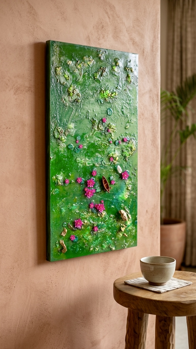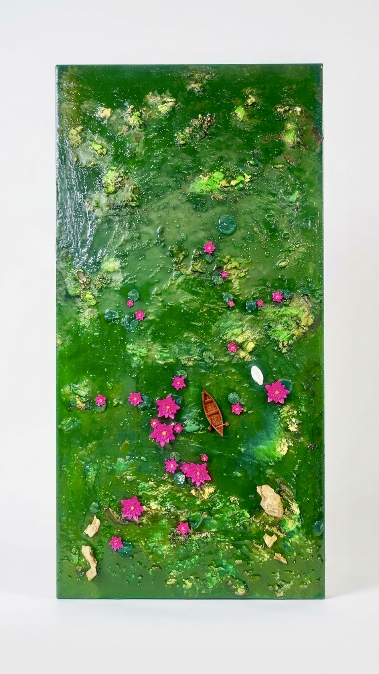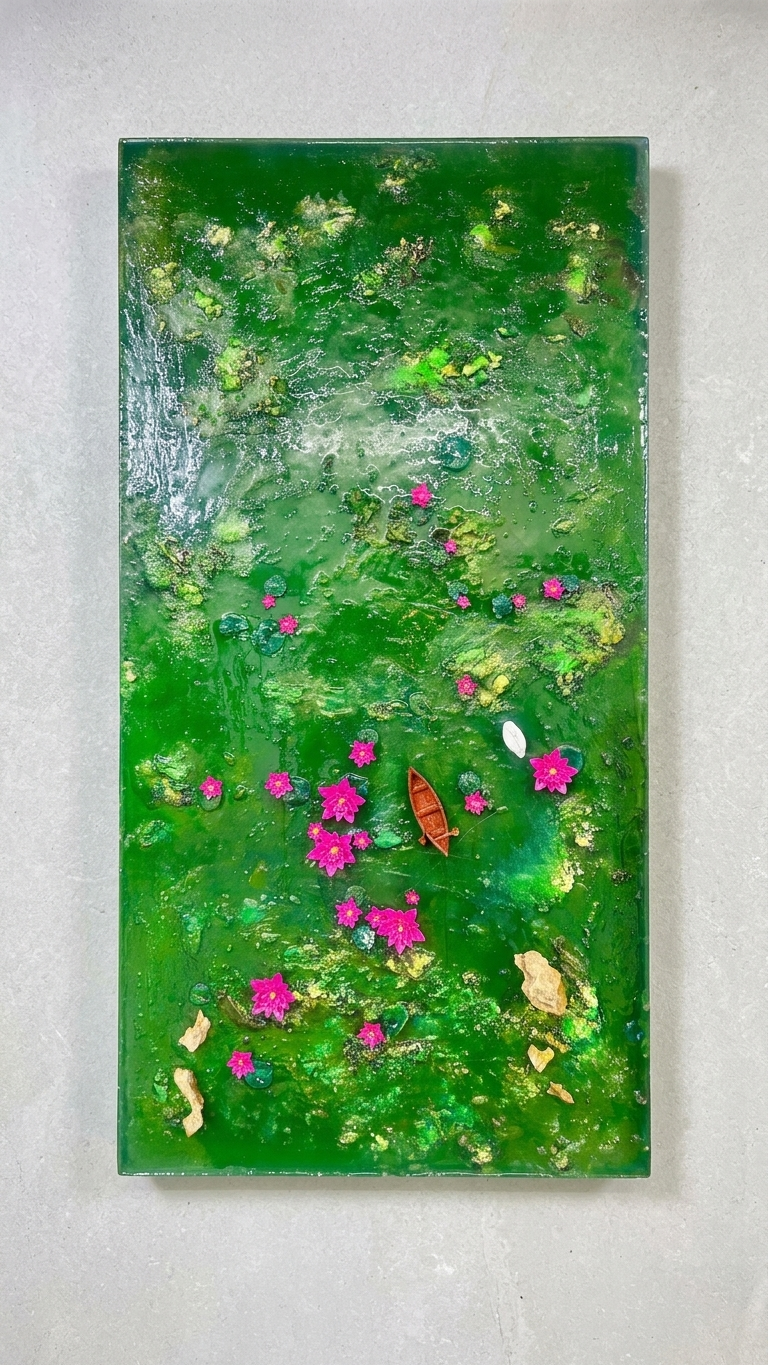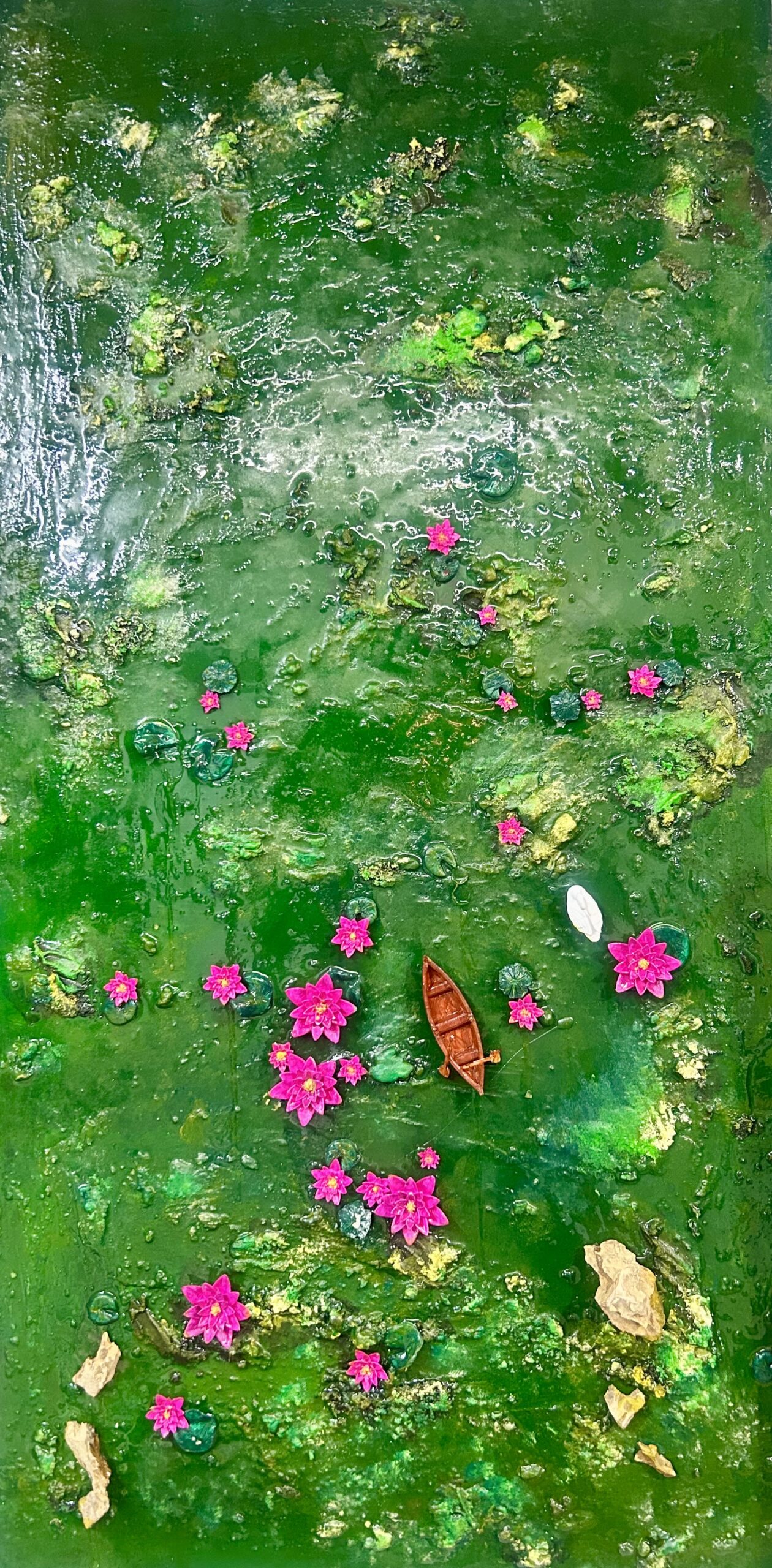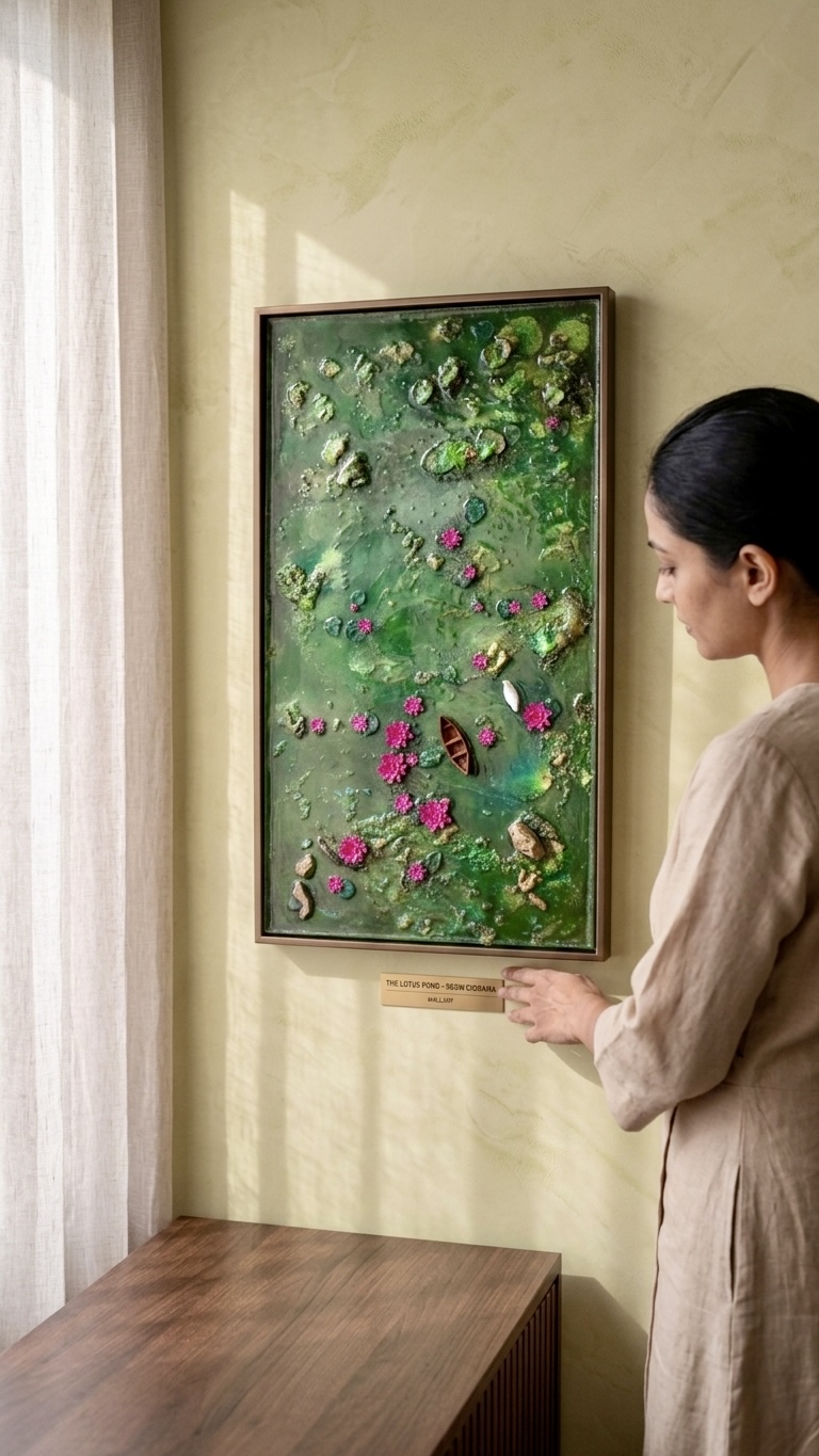 A serene celebration of nature and depth, this handcrafted Lotus Pond 3D Artwork captures the peaceful beauty of blooming lotus flowers floating across tranquil green waters. Designed with rich textures, realistic detailing, and dimensional elements, this piece creates an immersive visual experience that brings calm and elegance into any space.