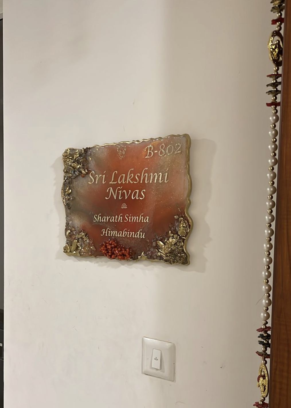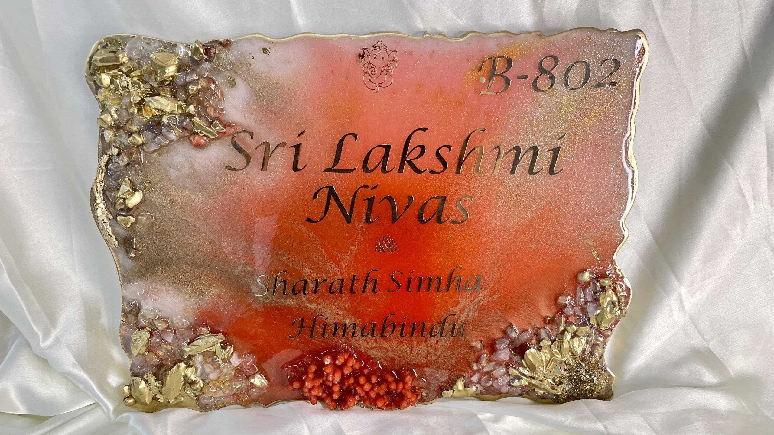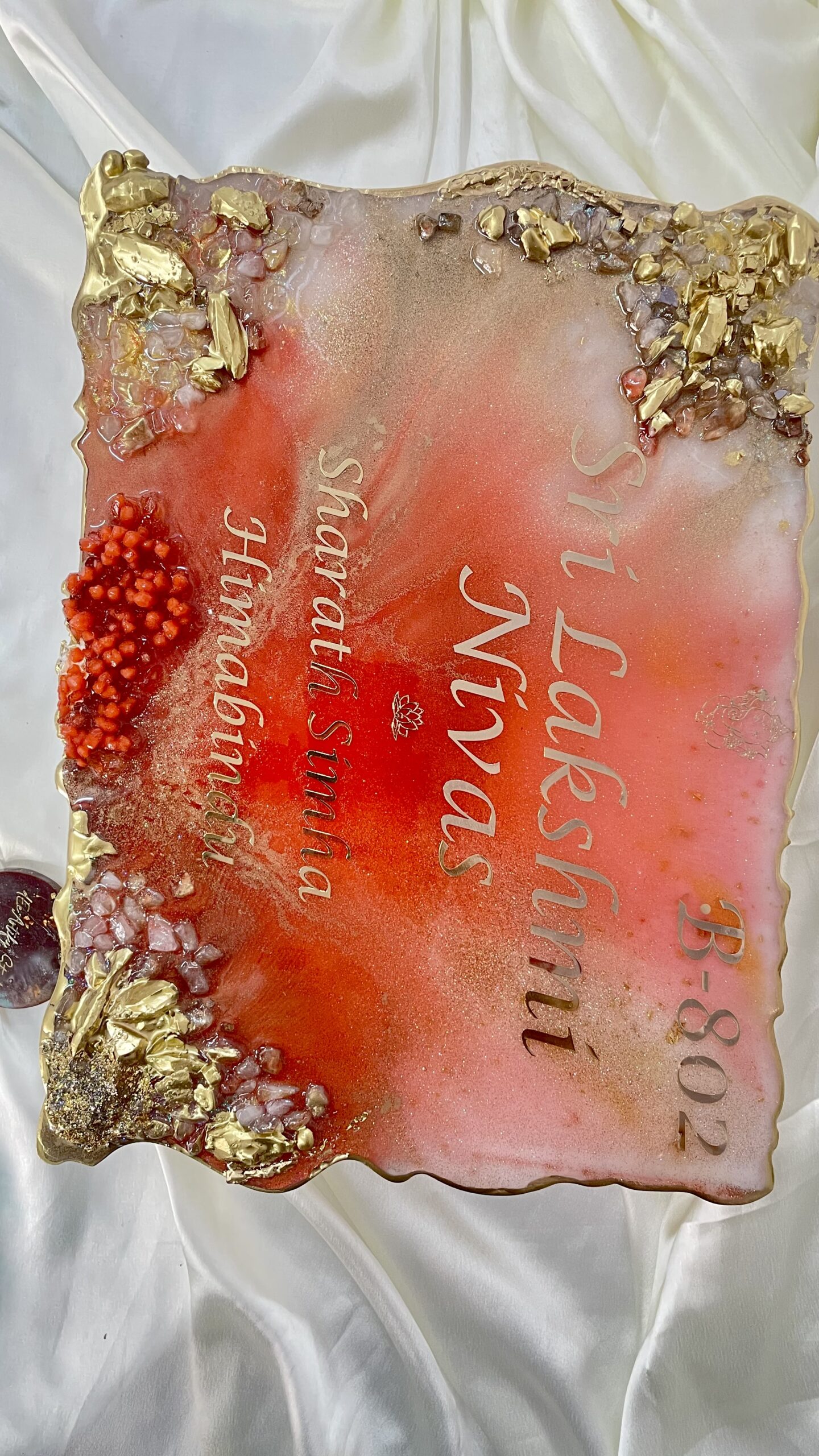 Each name plate is individually handcrafted using high-quality resin, semi-precious crystal textures, and luxe metallic accents, making every piece one of a kind. Designed for modern villas, luxury apartments, studios, offices, and statement entrances, this red geode name plate adds depth, elegance, and personality to your space.