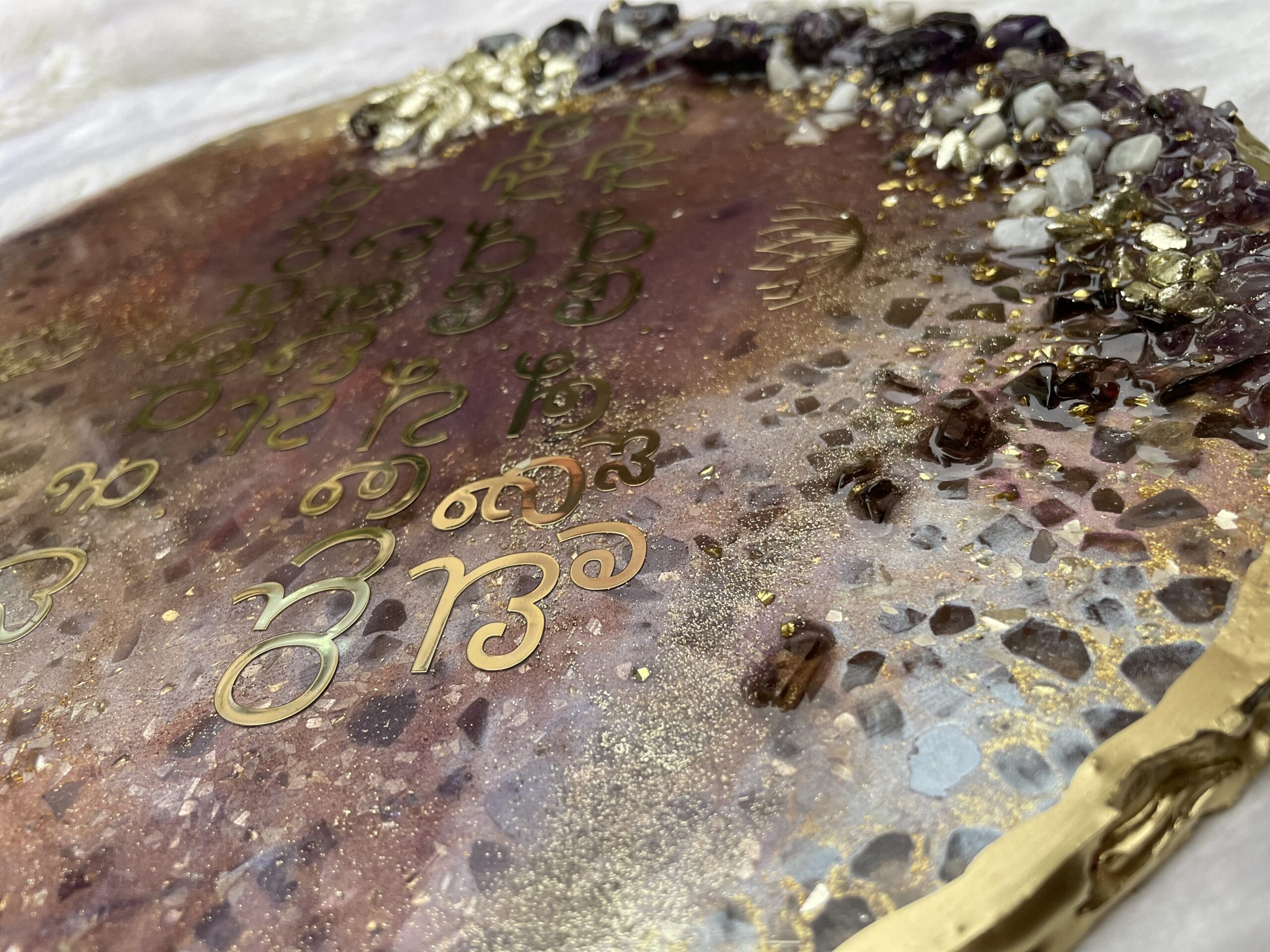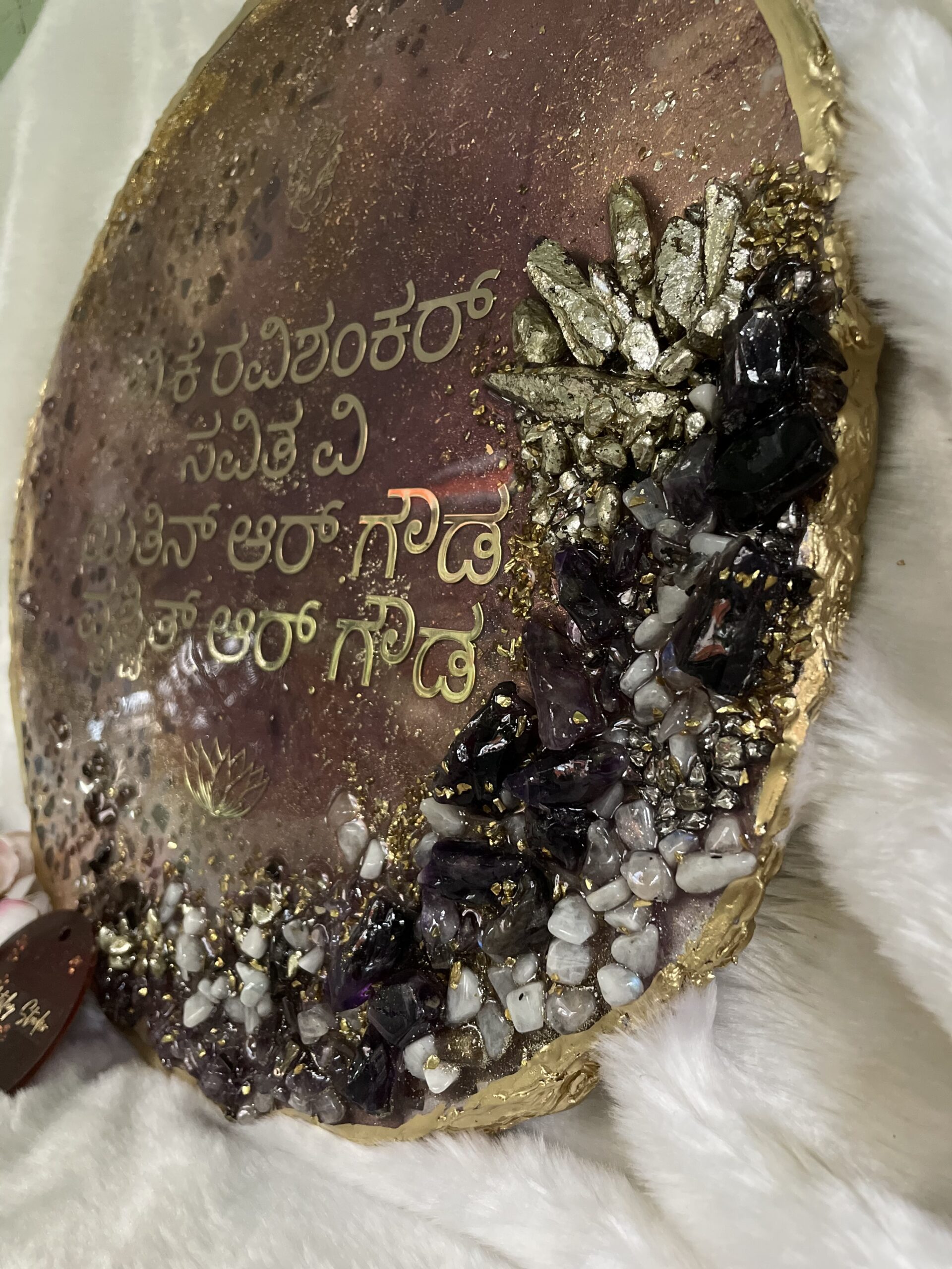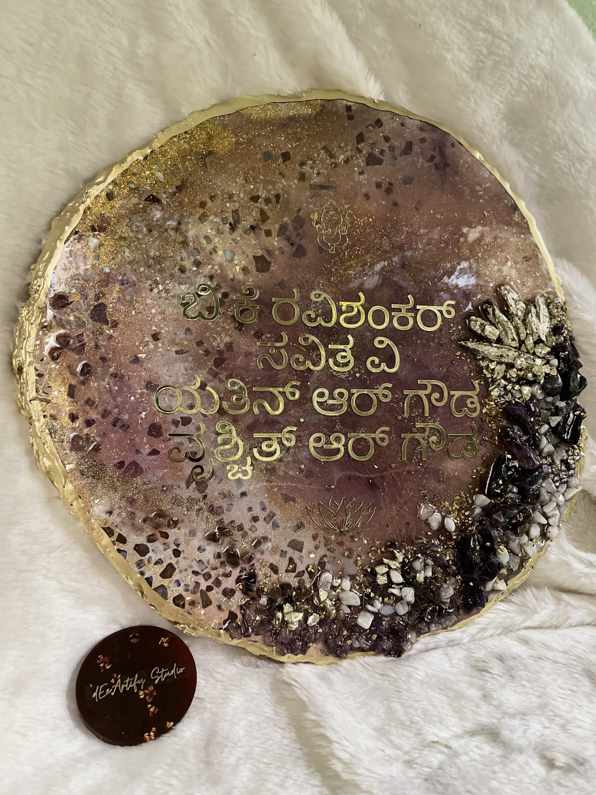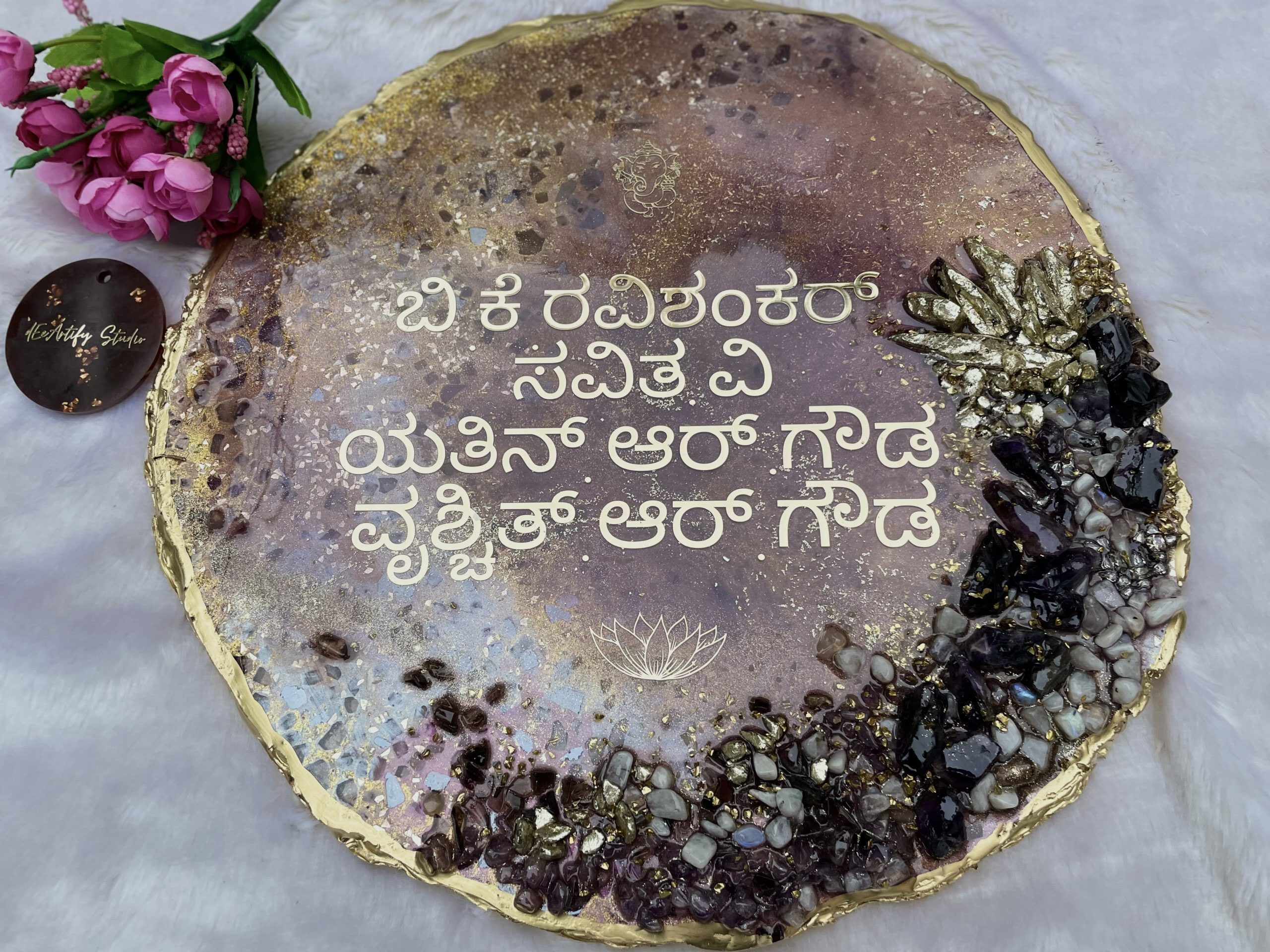 Our Crystal Resin Name Plate is a handcrafted luxury home sign designed to elevate your entrance with timeless elegance. Created using premium resin, crystal textures, and metallic accents, this round name plate brings a modern yet classy statement to your home façade.