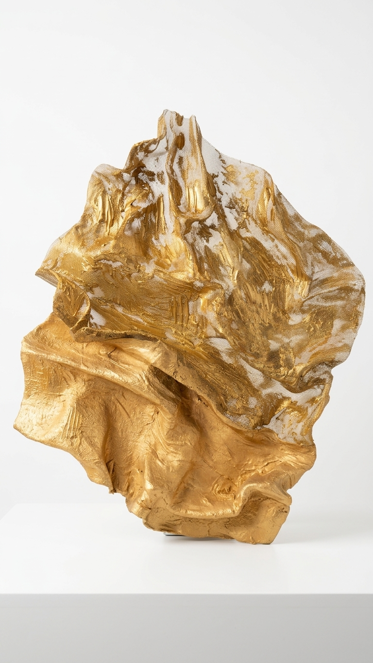 Handcrafted with mesh, rich textures, and gold gilded detailing, this contemporary statement piece brings bold elegance and modern sophistication to any space