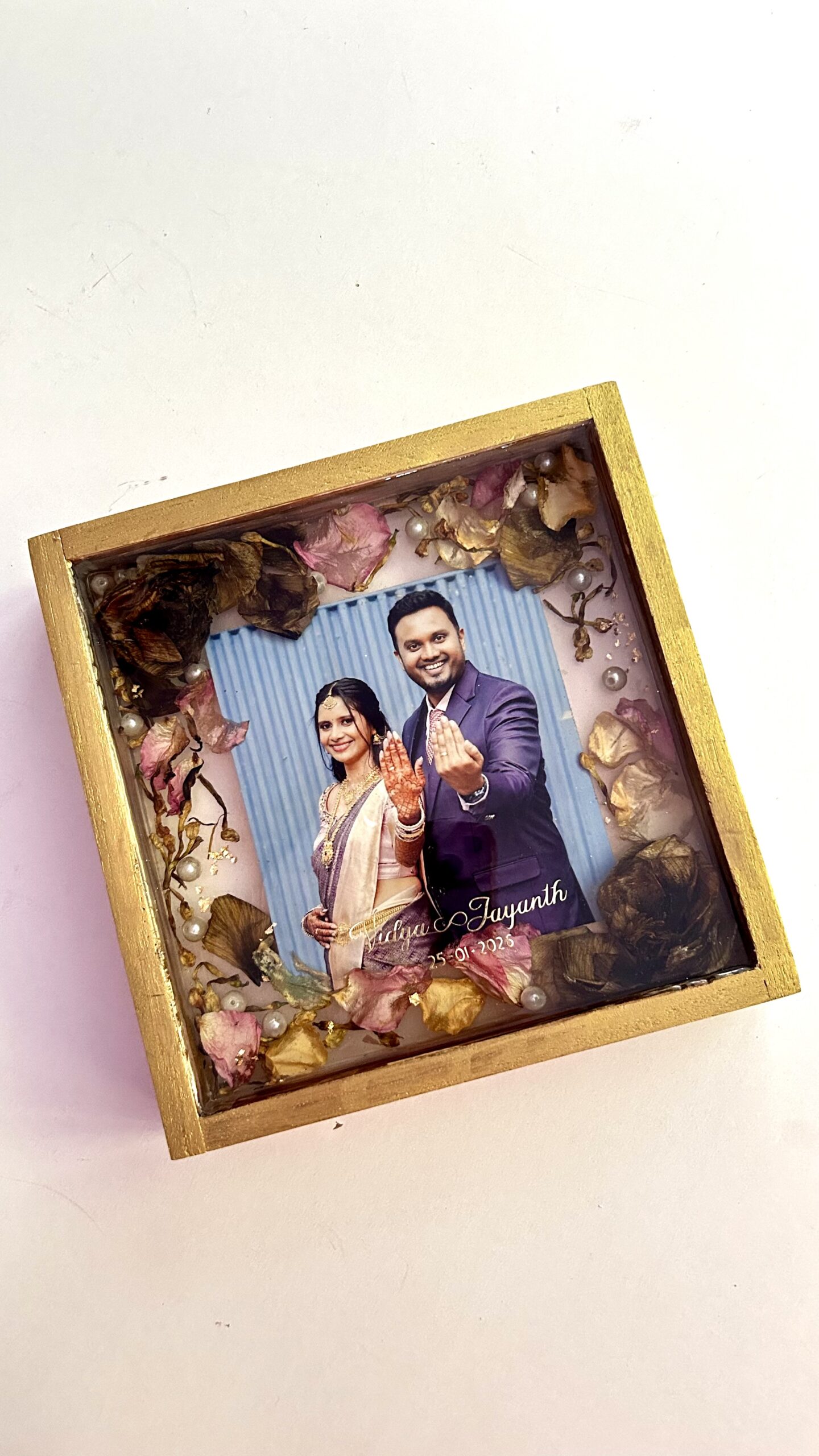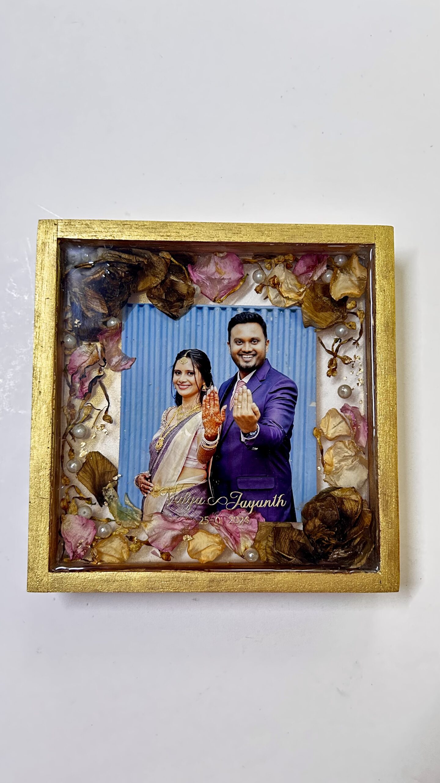 Encased in a luxurious golden frame with elegant pearl and floral accents, this keepsake transforms meaningful moments into a timeless piece of art. Every frame is uniquely handcrafted, ensuring that your preserved flowers remain a beautiful reminder of love, celebration, and unforgettable memories.