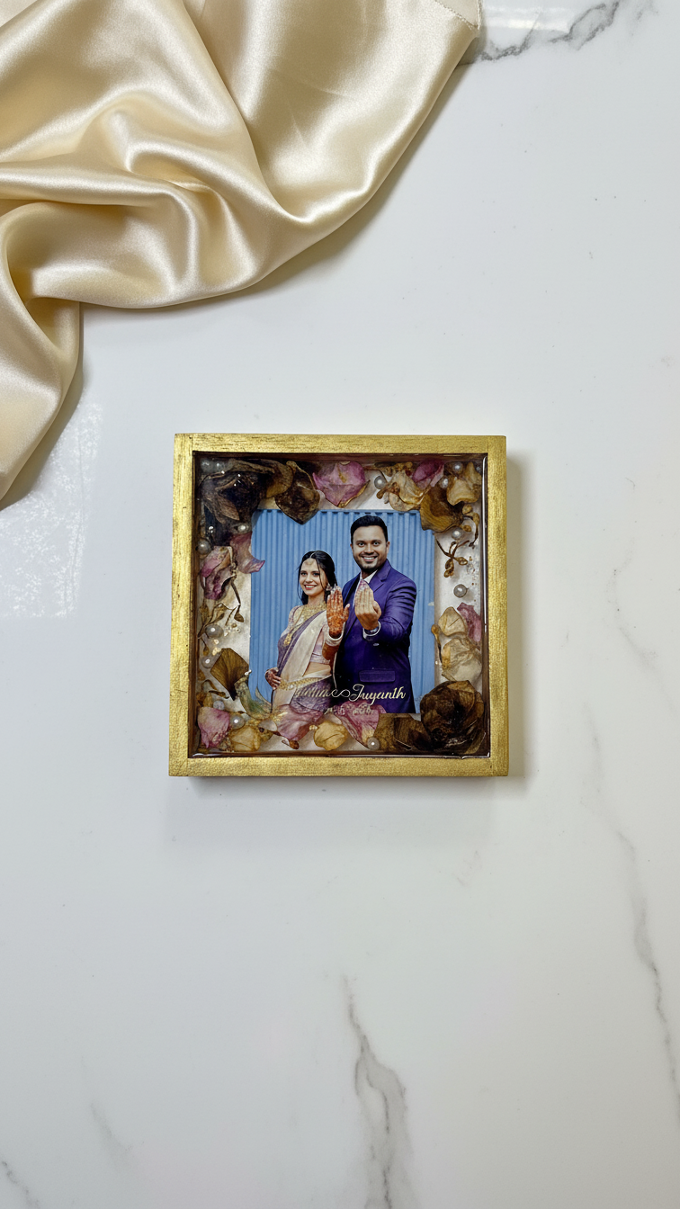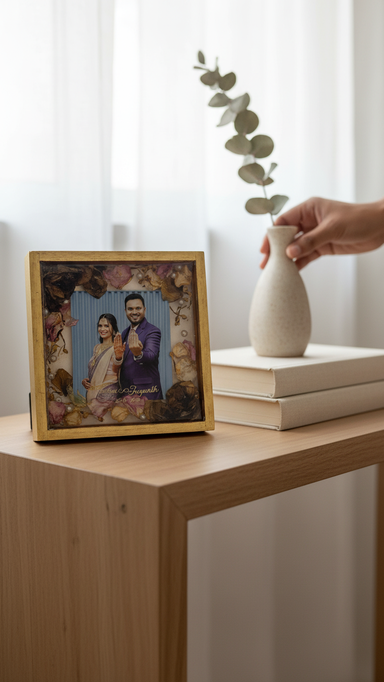 Golden Memories – Floral Preservation Teak Wood Photo Frame