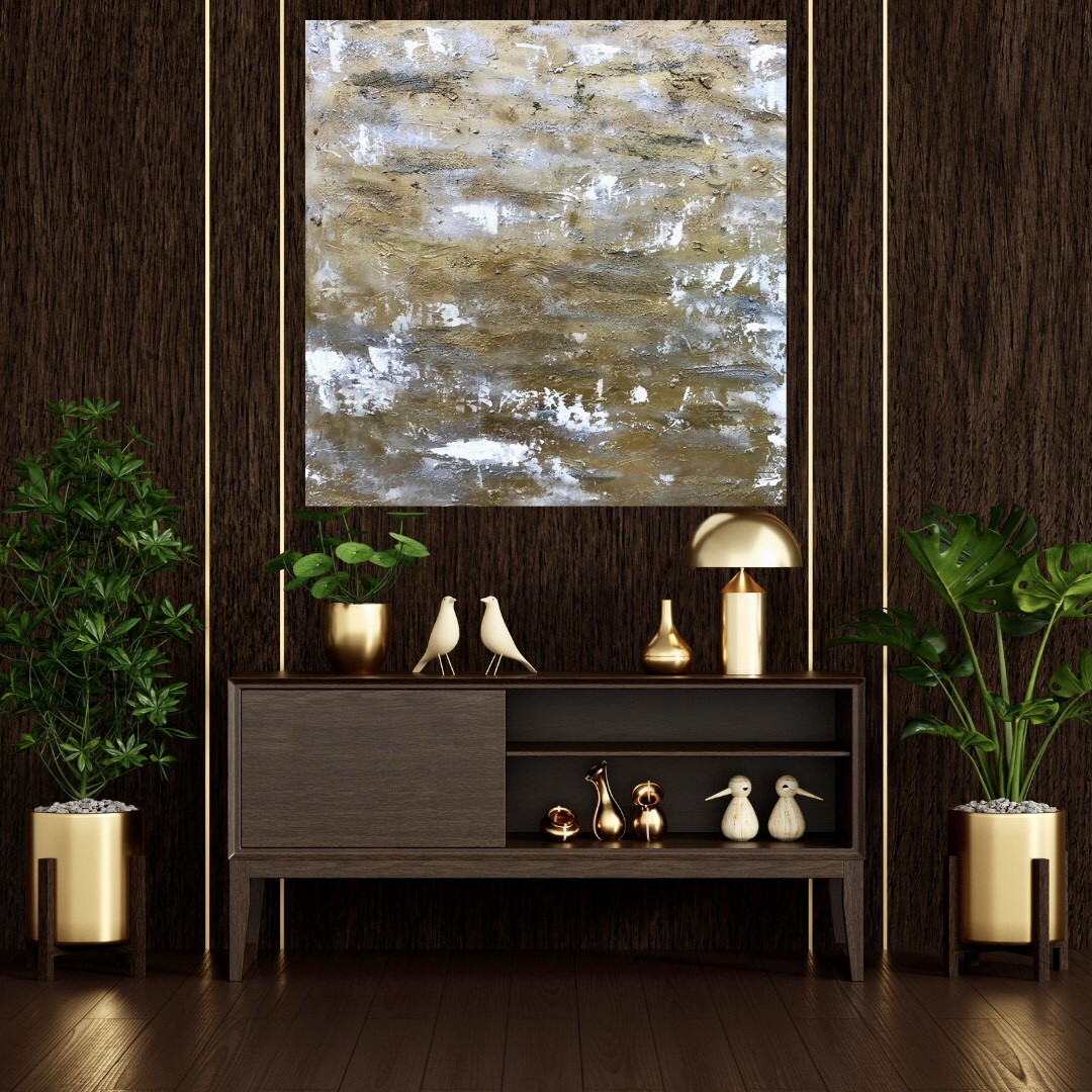 Bring warmth and depth to your interiors with this handcrafted textured abstract wall art from DeeArtify Studio. Inspired by natural earth tones and organic textures, this artwork features rich layers of sandy gold, soft neutrals, and subtle white accents that create a beautifully weathered and rustic aesthetic.