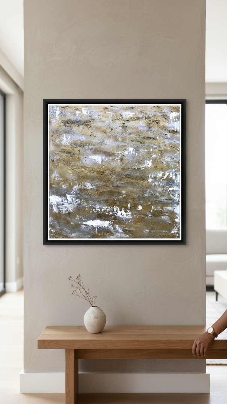 Each artwork is carefully handcrafted, ensuring a unique composition of textures and tones that cannot be replicated.
